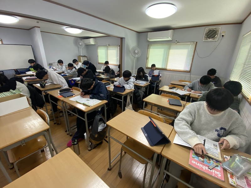 学び舎では、「自宅では勉強がはかどらないので塾で勉強したい」「質問できる環境で勉強したい」等のご要望にお応えして、定期テスト前の休日・祝日に自習室を無料で開放しています。